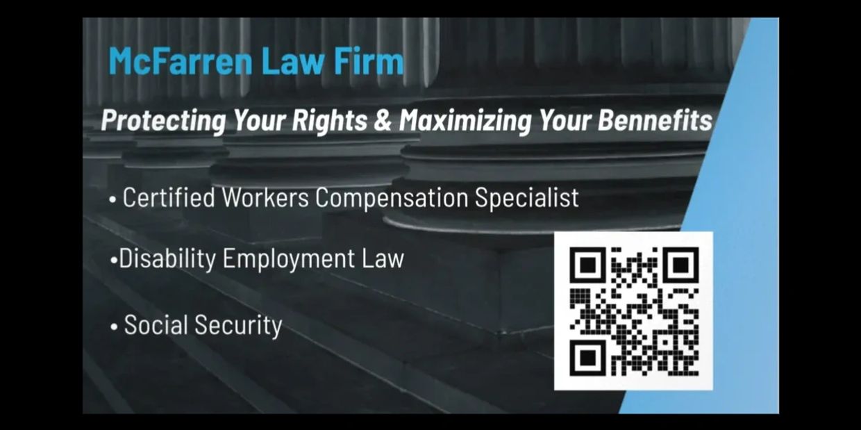 As a compassionate and dedicated lawyer, McFarren Law understands the challenges that clients face when navigating the legal system. With over 13 years of experience, McFarren Law has successfully represented clients in a range of legal matters, including workers compensation, social security, disability employment law and Cal-Pers, . McFarren Law is committed to providing personalized attention to each client and tailoring legal strategies to meet their individual needs. If you're looking for a lawyer who will advocate for your rights and fight for your best interests, you can count on McFarren Law.